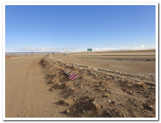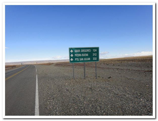 Je vais passer par Gob. Gregores, cela me fait 50km de plus de piste mais j’ai besoin de passer par une ville, ne serait-ce que pour me réapprovisionner en nourriture et eau mais je vais aussi essayer de trouver d’autres vêtements et aussi du tissu pour confectionner une porte à la tente car là c’est la cata… Et pour couronner le tout le nouveau matelas est percé et en plus il n’isole pas du froid, bref les conditions sont difficiles… Je ne prends pas non plus le raccourci car la piste risque d’être enneigée…