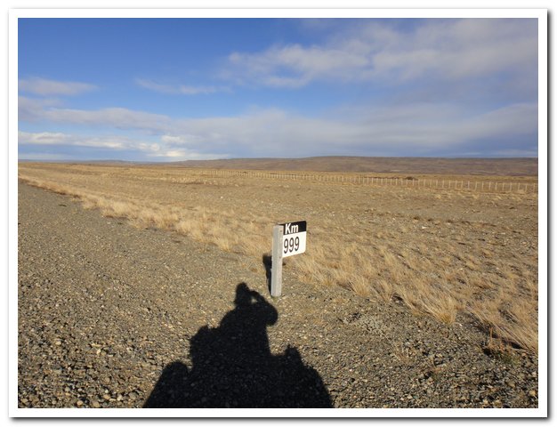 J’ai voulu prendre le km 1000 en photo, mais il n’existait pas, alors nous nous contenterons du 999, 999 km de quoi ? Mystère, peut-être Ushuaïa, à condition que j’arrête de zigzaguer…