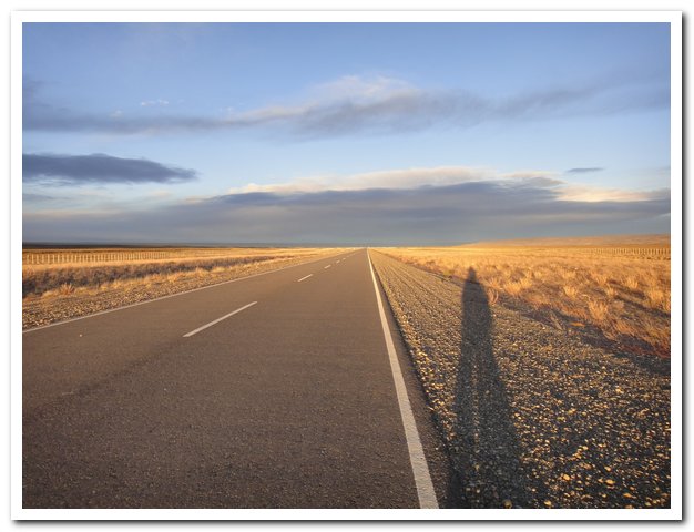 Ici il n’y a rien, mais rien de rien, ni village ni maison, même pas la voiture par heure promise par Enzo, rien que la route et la pampa, sans le vent j’adore…