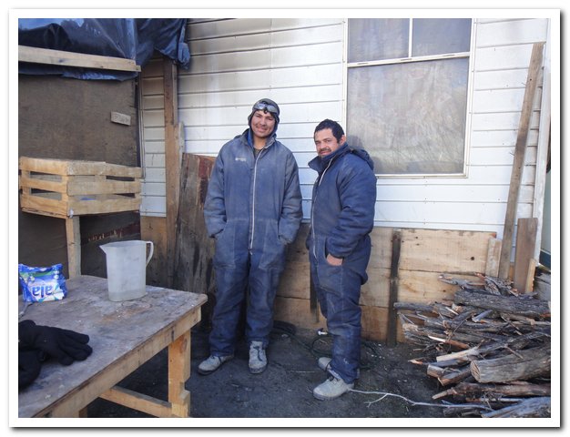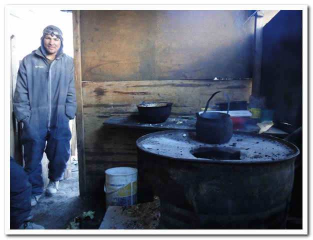 Au « campamiento » des ouvriers je demande à bénéficier d’un peu de chaleur, c’est l’heure du déjeuner, ils m’offrent à manger.