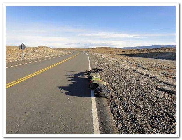 Là je cherche un hôtel pas trop cher avec eau chaude, wifi et où je puisse cuisiner. Je me renseigne aussi sur ce qui est proposé pour aller sur le Perito Moreno, un des plus beaux glaciers du monde. J’étudie aussi la suite de mon itinéraire : passer par la côte coté Pacifique ou coté Atlantique ? Je sors récupérer mes cartes sur mon vélo, horreur on me les a volées… Je m’apercevrais plus tard que l’on m’a aussi volé le filet où je mettais bonnet, gants écharpe, lunettes. Ouf il me reste ma cagoule (sur ma tête), mes lunettes (sur mes yeux), plus de gants. La jeune femme de la réception de l’hôtel devant mon désarroi me donne une paire de gants.