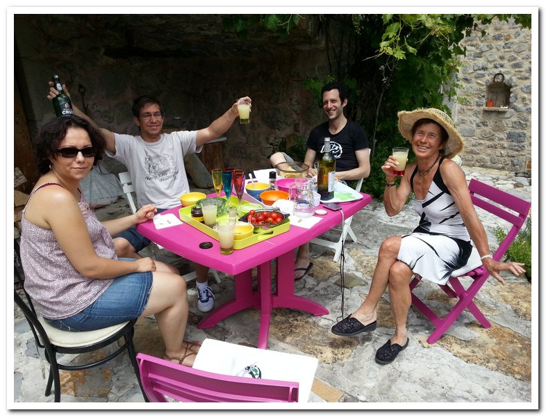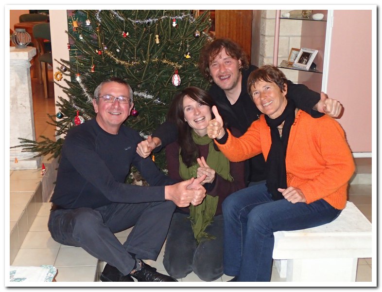 Et puis, et puis quatre cyclotouristes d’Amérique latine qui partagent leur bonheur… De gauche à droite Jean-Luc (alias Janodou), Corinne, Enzo et Françoise, merci Jean-Luc de nous avoir accueillis au milieu de ta famille et tes amis.