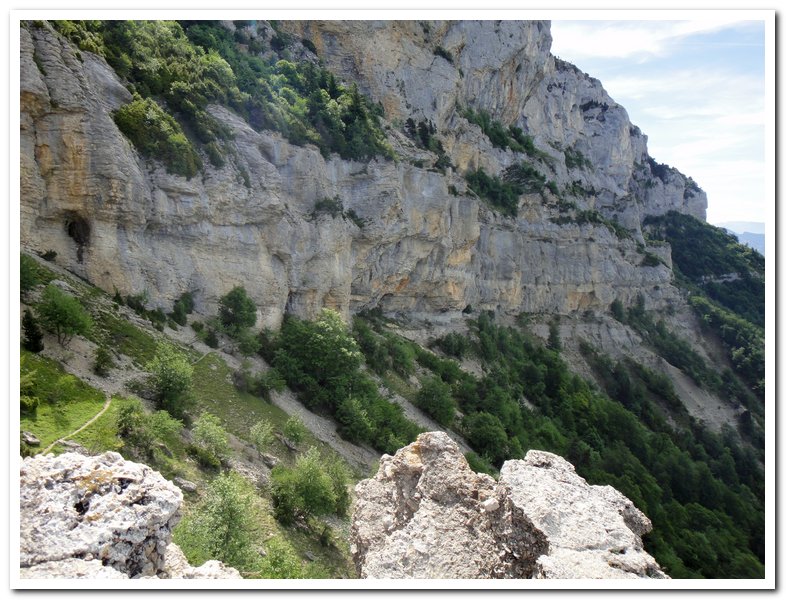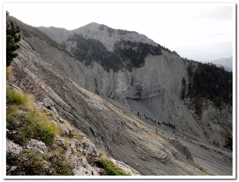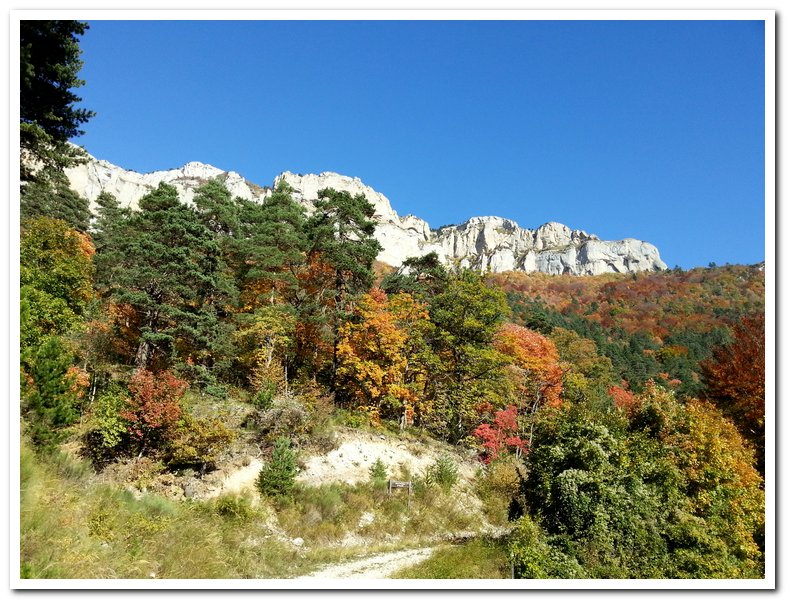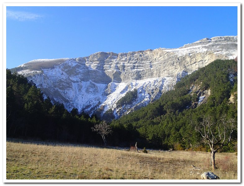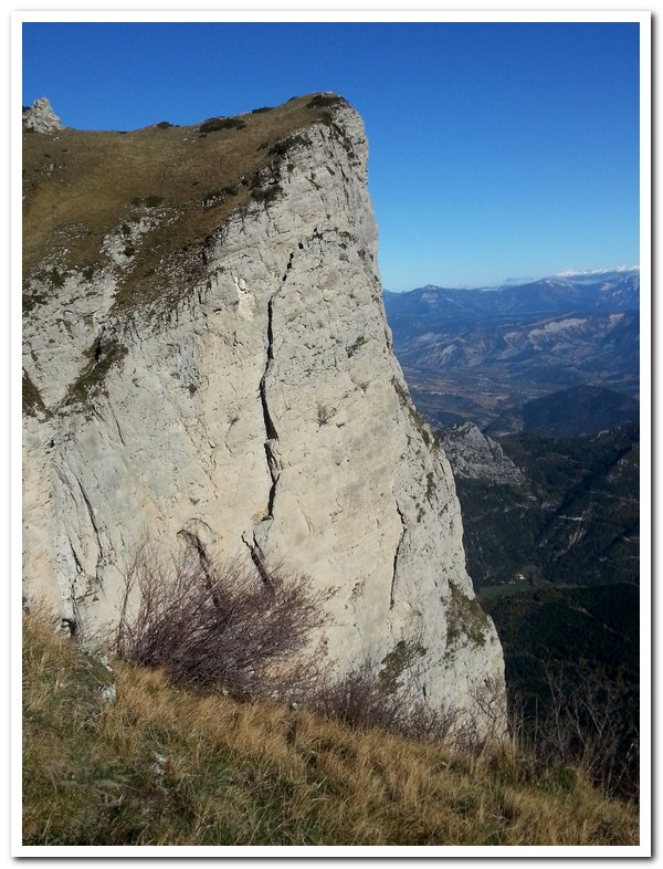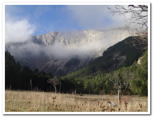 Petite wikepedienne sur le diois, il y a le diois et le haut-diois, bien sûr j’habite dans le haut-diois. Cette région méconnue de tous, sauf des hollandais qui viennent l’été se baigner dans la drôme a une histoire géologique très particulière : c’est le seul massif montagneux en France qui subit à la fois la poussée qui forme les Pyrénées et celle qui forme les Alpes, d’où ses multiples montagnes entrelacées… Par ailleurs il y a longtemps, longtemps il y avait une mer, d’où la multitude de fossiles. L’érosion qui se joue du calcaire friable mais bute sur la roche plus solide a engendré mille et mille formes, mille et mille falaises…