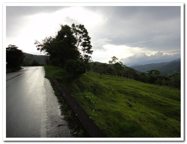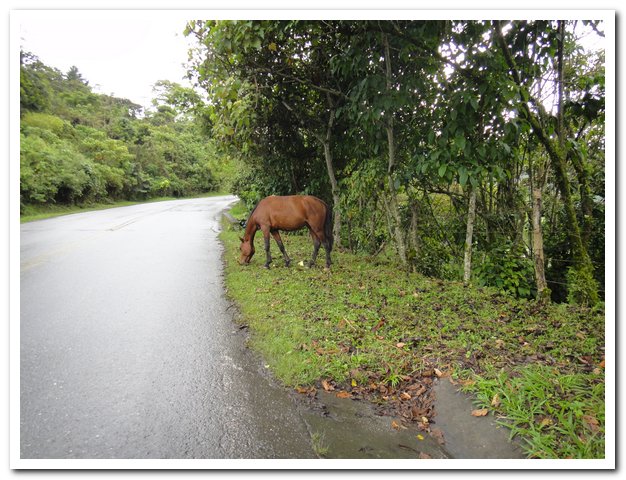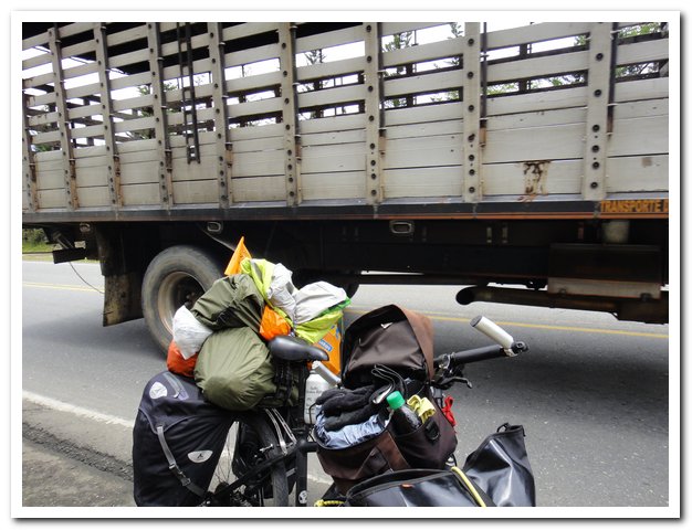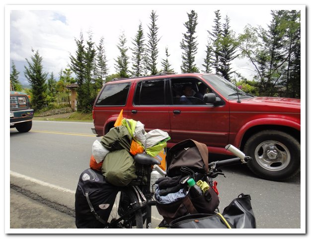 • Particularités de la journée : surprise, la panam n’est pas ce que je redoutais, à savoir une autoroute avec trafic intense, non, c’est une route de montagne avcec quand même un peu trop de circulation, ça va aussi monter plus que prévu et la pluie commence à m’énerver