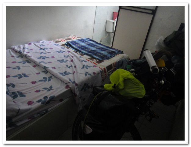 • Séquence je pars tard : malgré un lever à 6 heures je ne pars qu’à 9h30 car j’ai défait l’intégralité de mes sacoches, d’abord pour les laver (entièrement recouverte de boue) et ensuite pour tenter de faire sécher mes affaires, donc ça demande un peu de temps de tout remballer… Et puis dans le prix de l’hôtel est compris le petit déjeuner, alors j’en profite… Et puis je fais bien ce que je veux, na…