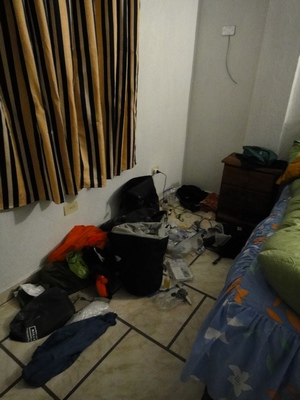 Petit détail pratique et important pour moi qui me sers de tous ces objets électroniques lourds, inutiles mais que j’adore, je savais qu’au Venezuela il y avait différentes sortes de prises, mais savais pas que dans une même chambre ça pouvait exister, bin oui, pour remédier à ça ai déplacé le lit, faut dire qu’avec mon poussage commence à avoir des bras de déménageur…