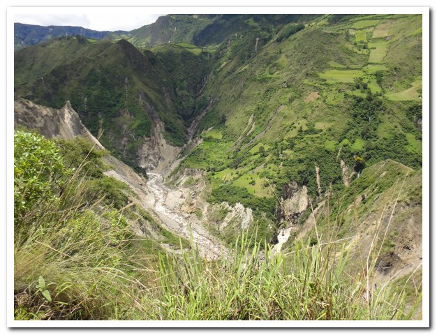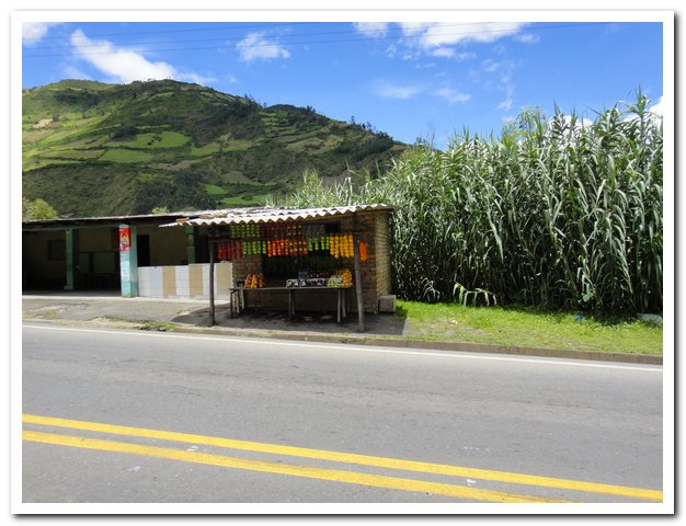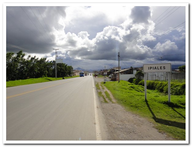 En arrivant à Ipiales (qui est très moche) et qui est la ville frontière avec l’Équateur je me suis mise en quête d’une carte de l’Equateur, j’ai essayé les pompes à essence, librairie, rien, on m’a dit à la maison du tourisme à la frontière qui est à 3km. Je verrai demain. Demain matin je vais moins me presser, au programme passage de la frontière, les papiers, rejoindre Tulcan ( ville frontière en Equateur), j’espère que les 10 km ne sont pas encore montants… A Tulcan, retirer de l’argent, chercher une carte si je ne l’ai pas trouvée à la frontière, prise de contact avec le pays, regarder un peu le Lonely Planète que j’ai acheté à Bogota, et si j’ai le courage, entretien du vélo, au fait j’ai toujours du bruit, juste un peu moins et maintenant qu’il a touché à la pédale droite j’ai l’impression que la gauche ce n’est pas ça.