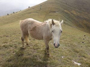 Et puis pour arriver au sommet ils ont du faire attention de pas s’emmêler dans les fils que j’avais arrachés et savamment emmêlés, et la grenouille verte en prenant une photo des chevaux que j’ébouriffais allègrement et bien elle est repartie sans son bâton, d’accord elle s’en est aperçue tout de suite