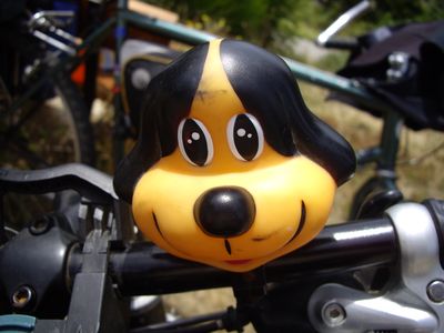 L’était souvent heureux le vélo au ti klaxon-chien orange…